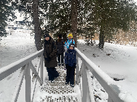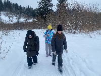 Виолетта Ильяшева узнала сама и презентовала для всех как передвигаться в зимой лесу без специального снаряжения: идти по следам, делать короткие шаги, равномерно распределять свой вес, не спешить (чем быстрее идёшь, тем больше вероятности провалиться в снег), использовать палки, сделать снегоступы.