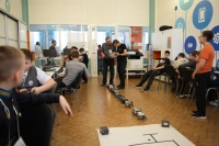 В ходе состязания участники выполнили практические задания по сборке, программированию и управлению роботом в разных рабочих зонах. Перед заездами экипажи протестировали и настроили датчики, собрали и подключили дополнительное навесное оборудование.